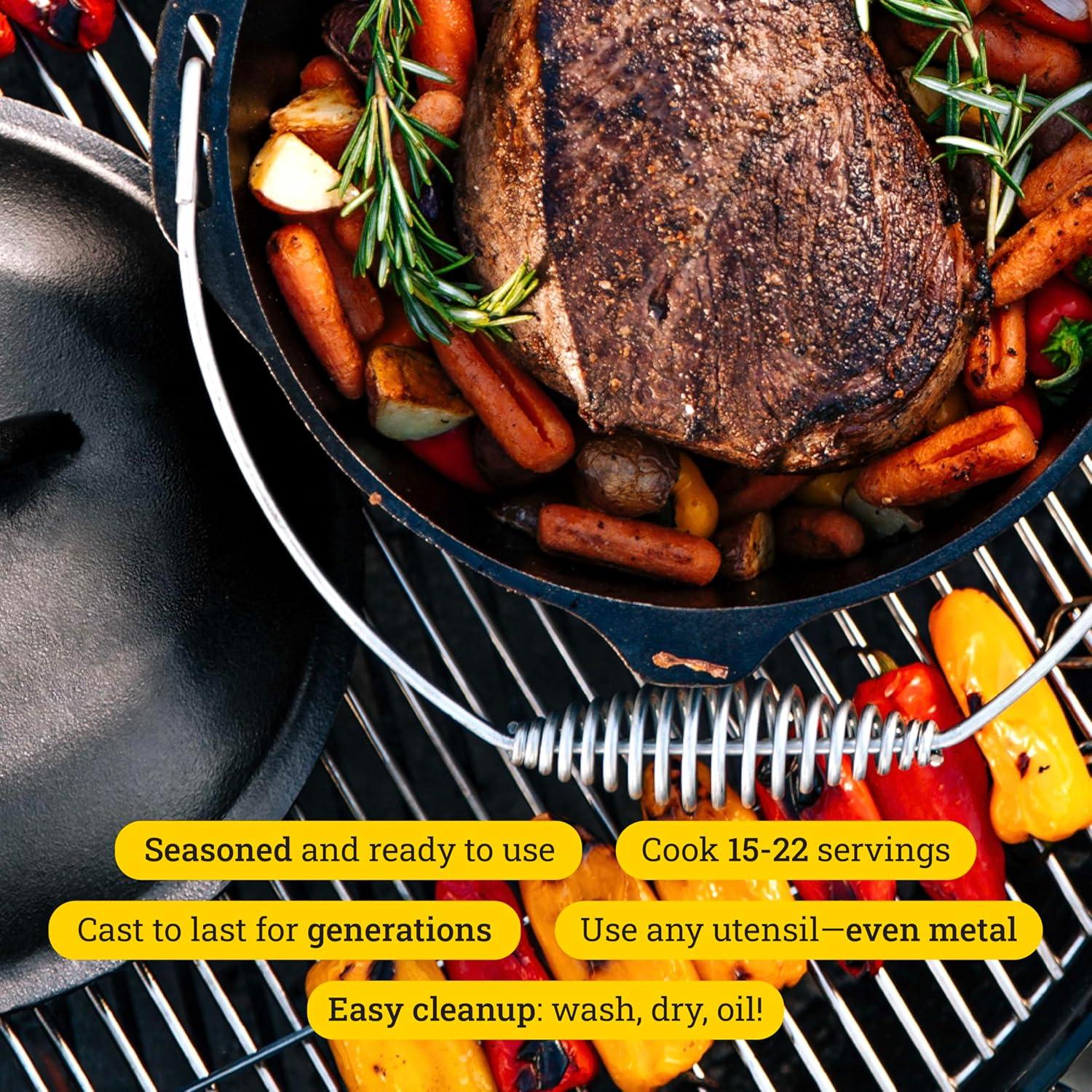 Lodge 6 Quart Pre-Seasoned Cast Iron Camp Dutch Oven with Lid – Dual Handles – Use in the Oven, on the Stove, on the Grill or over the Campfire – Black(10 Quart)