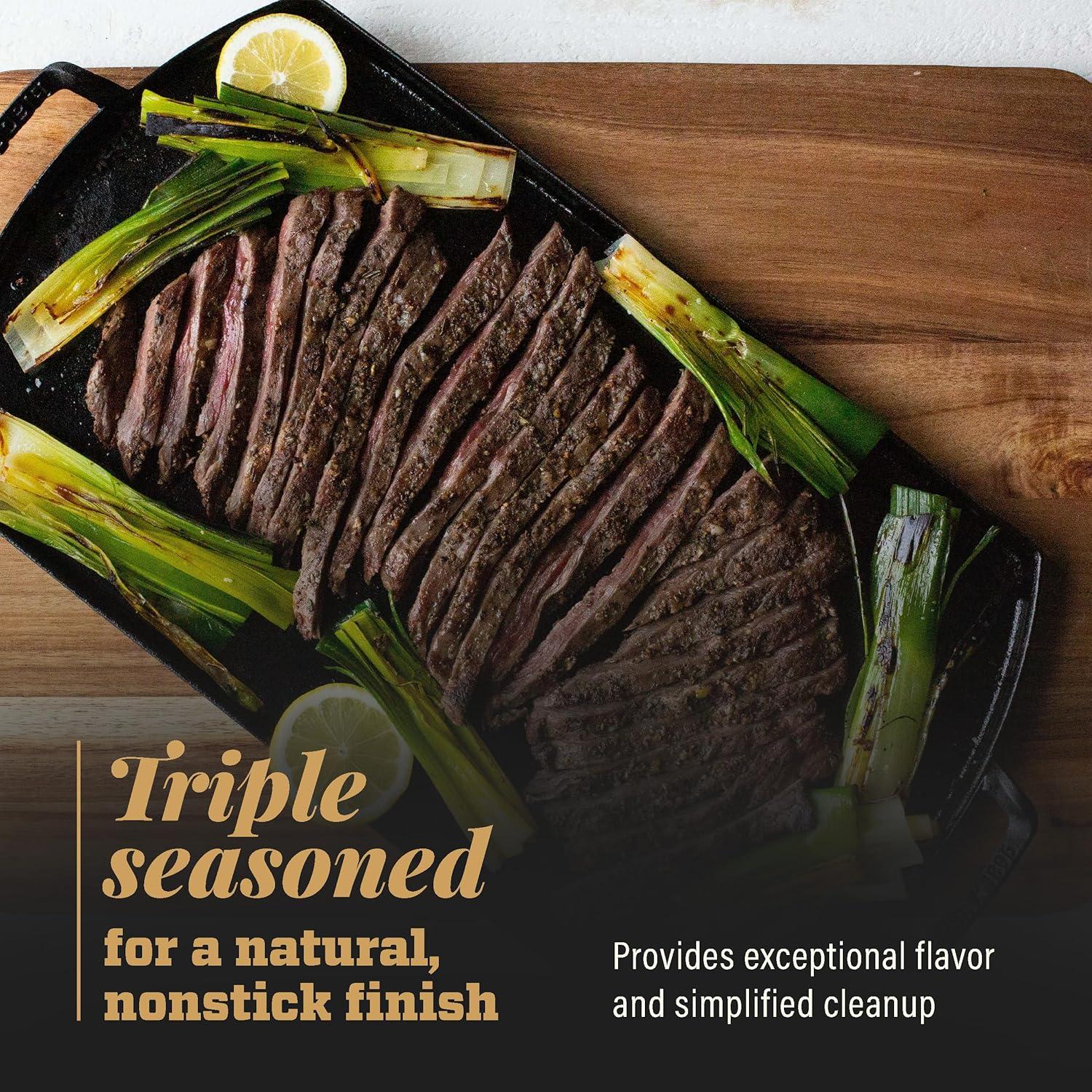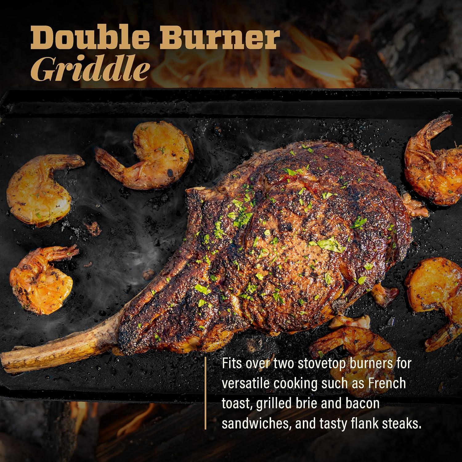 Lodge Blacklock 10″ x 20″ Cast Iron Double Burner Griddle – Triple Seasoned – For Indoor & Outdoor Cooking – Fits Over Two Burners – Easy Cleanup – Non-Toxic Material