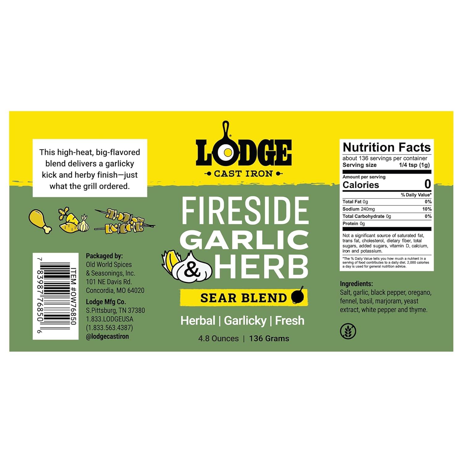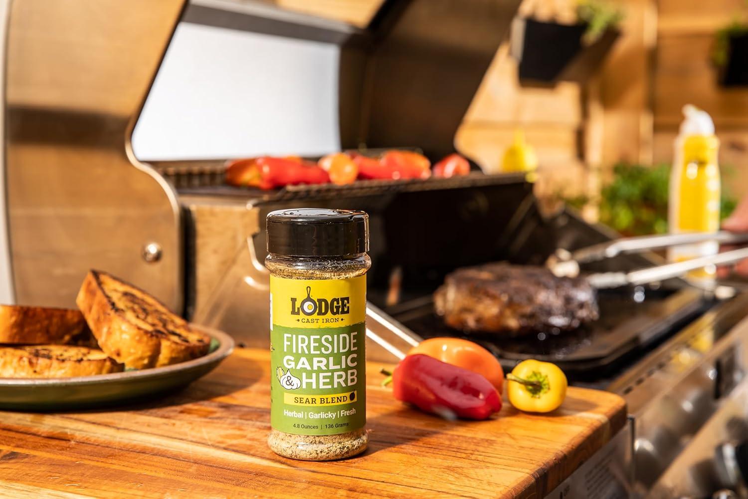 Lodge Sear Blend – Made for Cast Iron Cooking – Use Over the Grill, On the Stove, or Even in the Oven, Non-GMO – 4.8oz (4 Pack) – Fireside Garlic & Herb
