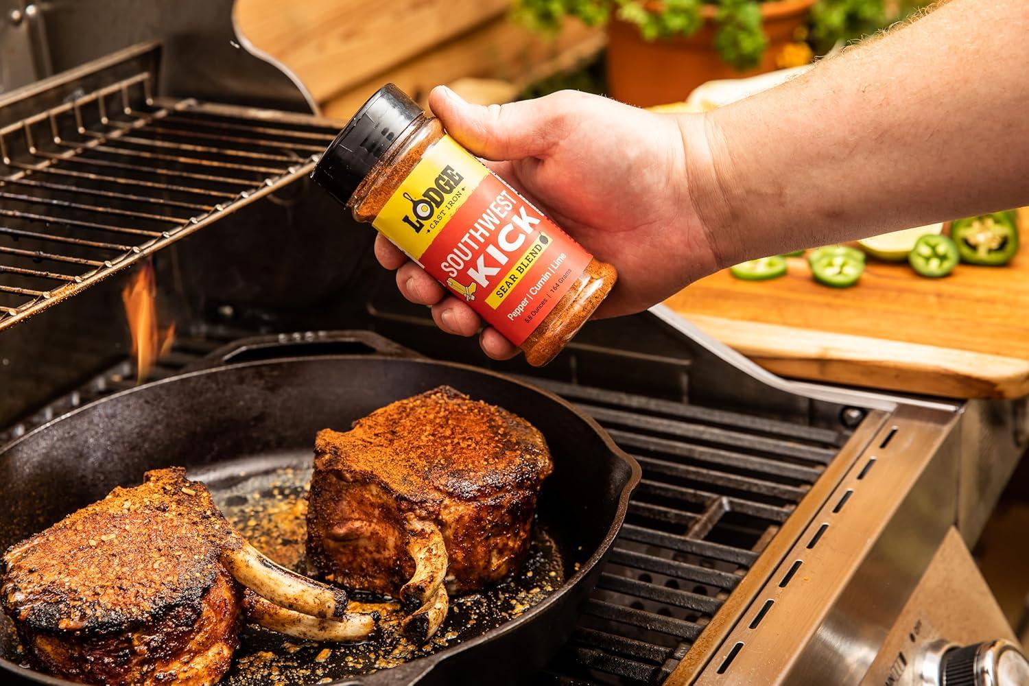 Lodge Sear Blend – Made for Cast Iron Cooking – Use Over the Grill, On the Stove, or Even in the Oven, Non-GMO – 5.8oz (4 Pack) – Southwest Kick
