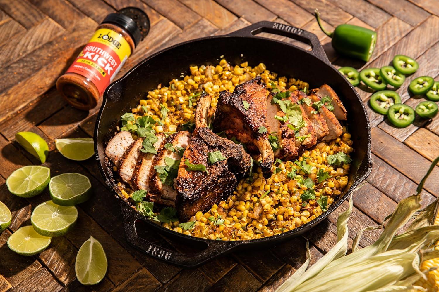 BOLD FLAVOR: Southwest Kick is a high-heat-loving blend inspired by cactus country, made for everything from pork chops and steaks to shrimp. Add a little kick to your favorite seared foods with a boot-scootin blend of pepper, cumin, and lime.
