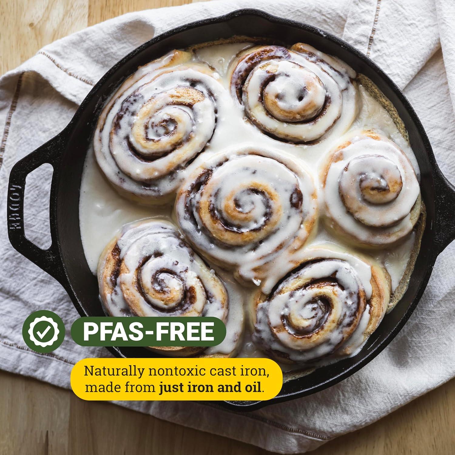 Lodge 10.25 Inch Cast Iron Skillet – Pre-Seasoned Frying Pan with Teardrop Handle – Oven, Stovetop, Grill & Campfire Use – Made in USA – Durable, Non-Toxic, Even-Heating Cookware – Black(12 Inch)