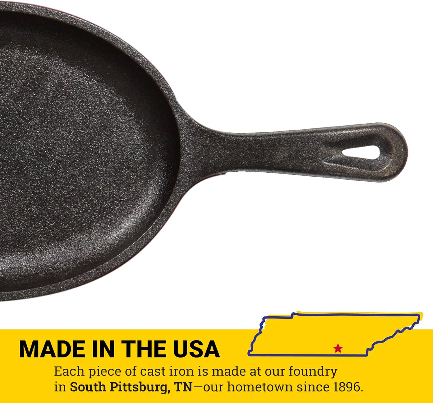 Lodge 10 x 7.5 Inch Cast Iron Oval Serving Griddle – Cast Iron Fajita Pan with Signature Teardrop Handle – Fajita Skillet for Use in the Oven, on the Stove, or on the Grill or Over a Campfire – Black(10 x 7.5 Inch)