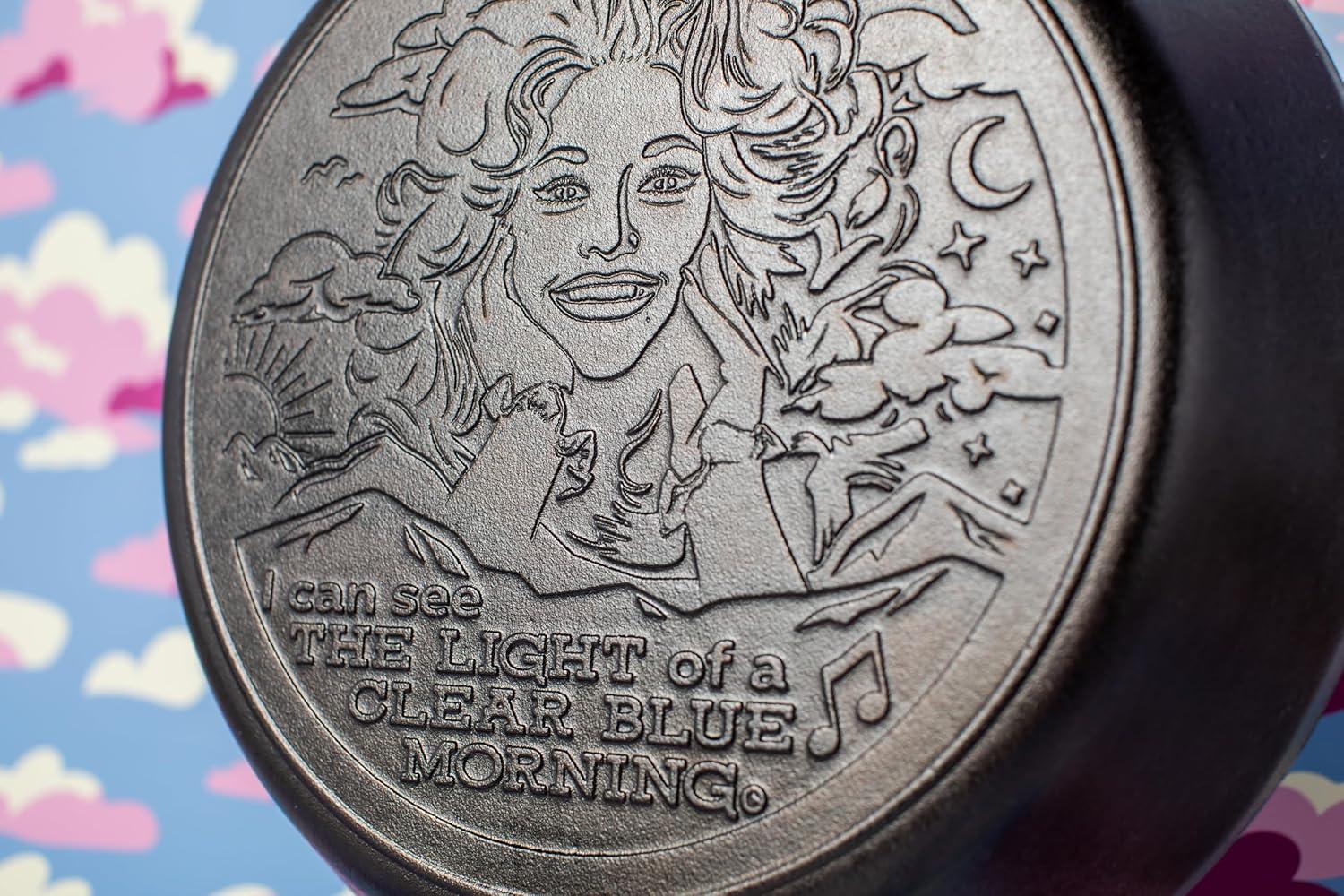 This skillet is inspired by the Smoky Mountains—the region where Dolly grew up and where we’ve been cooking, camping (and spreading the word on cast iron) since forever. The special-edition design includes lyrics from the song “Light of a Clear Blue Morning” and brings Dolly’s trademark spirit to fans and cooks alike.