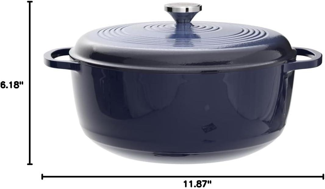 A flawless pairing of form and function that doesn't quit, the Lodge Dutch Oven is an enameled cast iron classic that's great for preparing and serving memorable meals. The right tool to marinate, refrigerate, cook and serve, cast iron is unparalleled in heat retention and even heating. Enameled cast iron features a smooth glass surface that won’t react to ingredients. Broil, braise, bake or roast in the oven up to 500°F or sauté, simmer or fry on any stovetop. Lodge’s century-old tradition of excellence continues as we marry the benefits of cast iron with the beauty of porcelain enamel. Superior heat retention produces a perfect braise or expert sauté, and the vibrant enamel surface allows food to be marinated and refrigerated. Workhorses in the kitchen and show pieces on the dinner table, these vessels offer all the style and function of French brands at a value that is all Lodge.