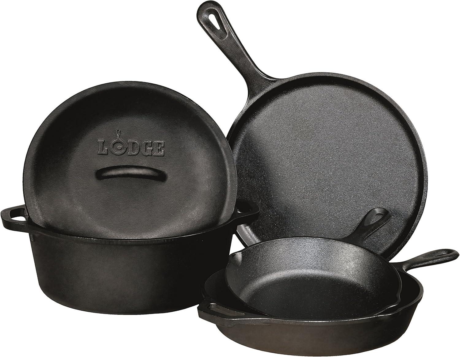 The Lodge 7 Quart Cast Iron Dutch Oven is ideal for slow cooking foods, and the cover features self-basting tips. Complete with loop handles for great control, this Dutch oven provides excellent heat distribution and retention for consistent, even cooking. It offers an abundance of possibilities. Use to sear, sauté, simmer, bake, broil, braise, roast, fry, or grill. It’s safe to use in the oven, on the stove or grill, and over a campfire. The Lodge Cast Iron Dutch Oven is made for decades of cooking and comes pre-seasoned for an easy-release finish that improves with use. Includes one Lodge 7 Quart Cast Iron Dutch Oven. Made in America. Care instructions for cast iron: 1. Wash with warm water. Add a mild soap, if desired. 2. Dry thoroughly with a lint-free cloth or paper towel. 3. Oil the surface of the pan with a very light layer of cooking oil while warm. Hang or store the cookware in a dry place.
