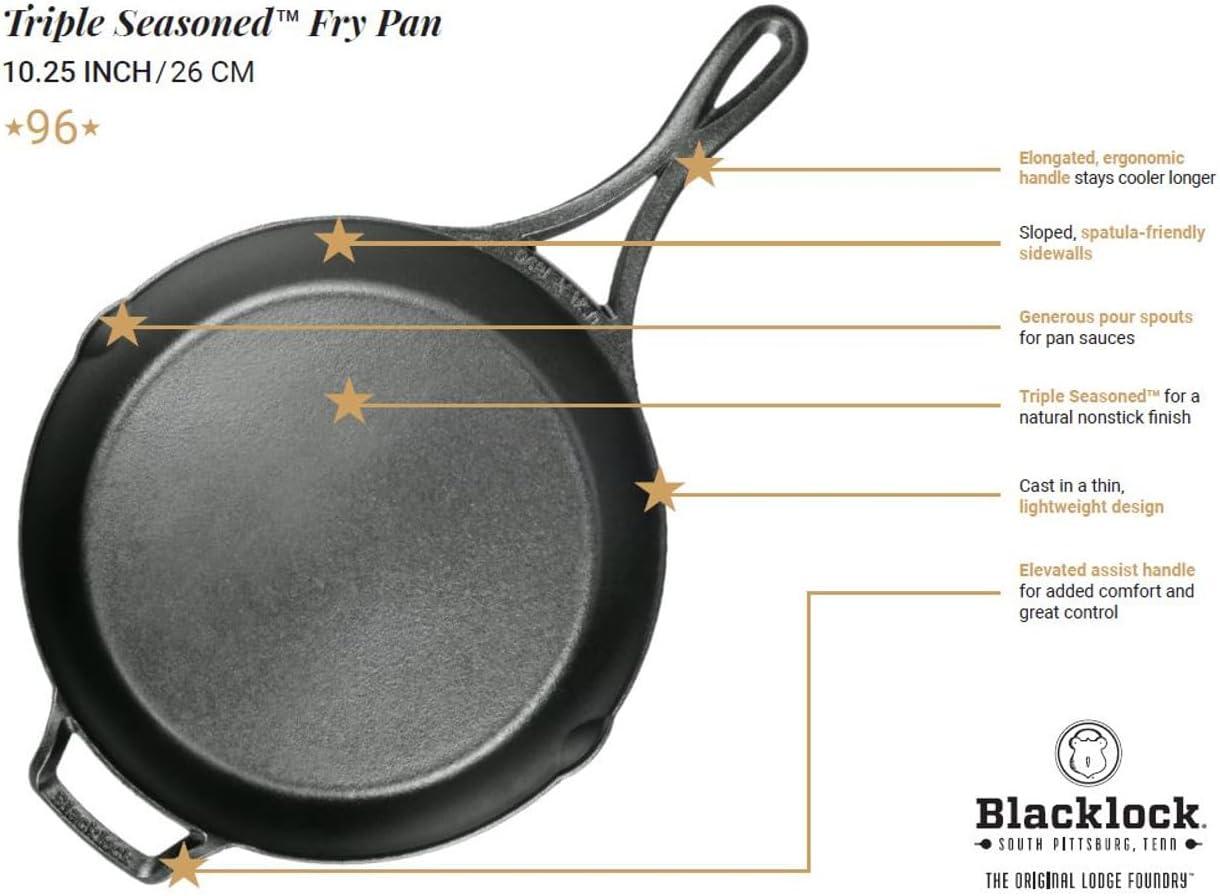 Lodge Blacklock 12″ Triple Seasoned Cast Iron Skillet – Lightweight – Easy Cleanup – Premium Cookware(10.25″ (Pack of 1))