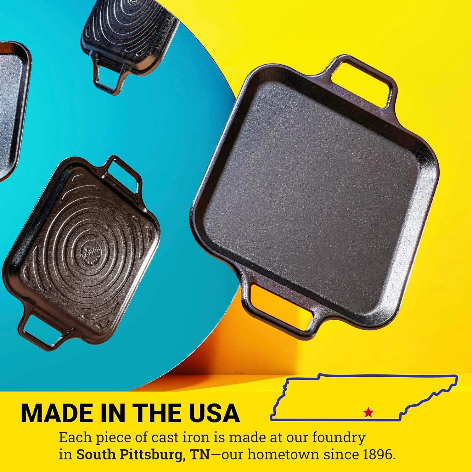Lodge BOLD 12 Inch Seasoned Cast Iron Griddle, Design-Forward Cookware(Square Griddle with Loop Handles)