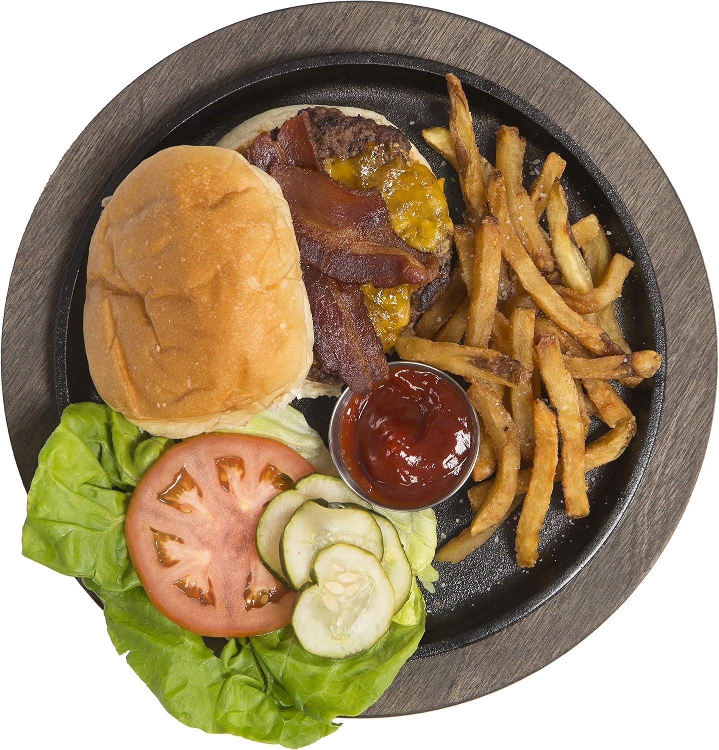From a burger and fries combo, to sizzling fajitas, the Lodge 9.25 inch Cast Iron Round Handleless Serving Griddle is the perfect to serve a meal with lasting impression. Seasoned with oil for a natural easy-release finish that improves with use, this griddle is at home in the oven, on the stove, on the grill or over the campfire. Great for induction cooktops! Cast iron is unparalleled in heat retention and even heating, making it brutally tough for decades of cooking. Easy care: hand wash, dry, rub with cooking oil.