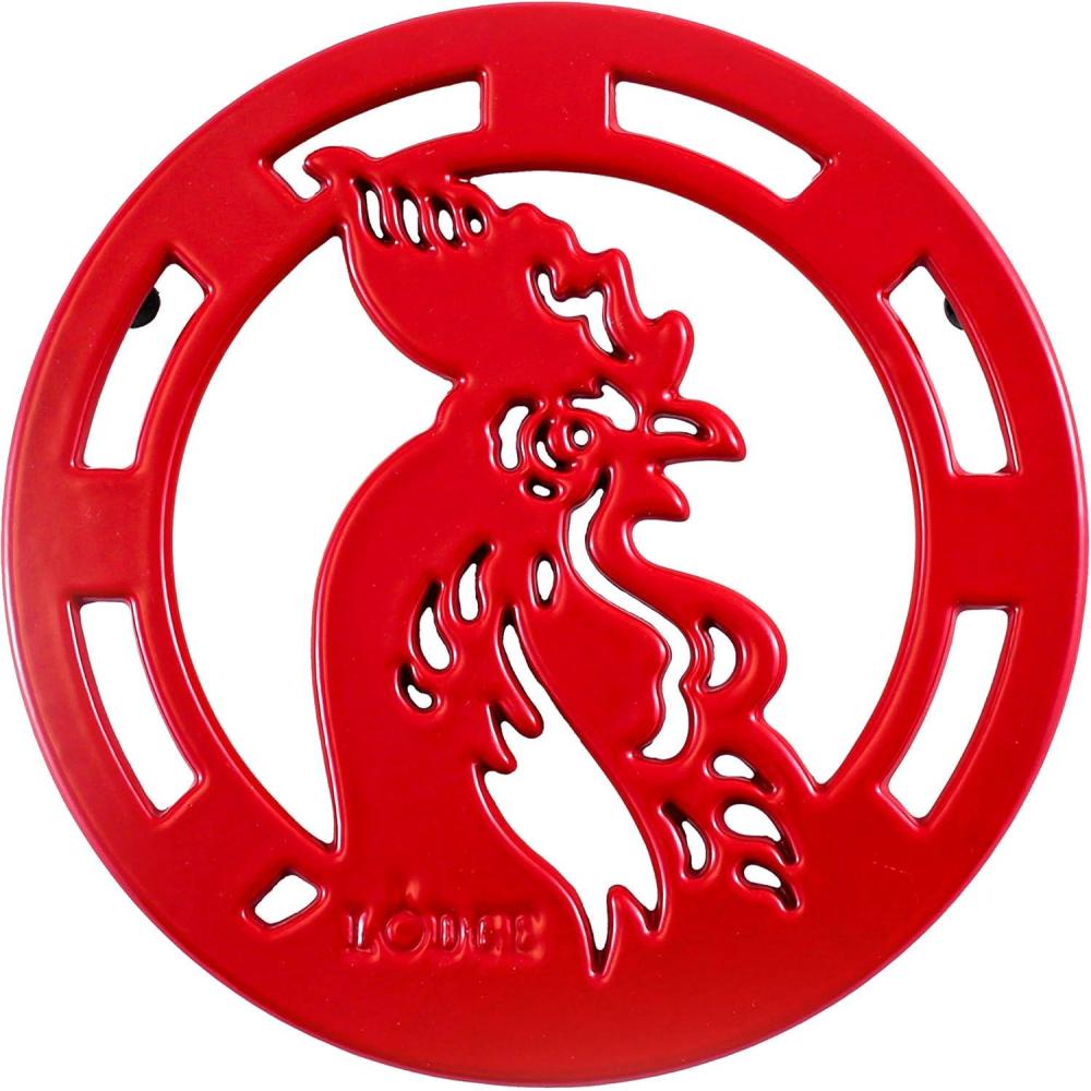 Lodge EC8ST13 Enameled Cast Iron, 8 Inch, Oyster Trivet(Rooster)