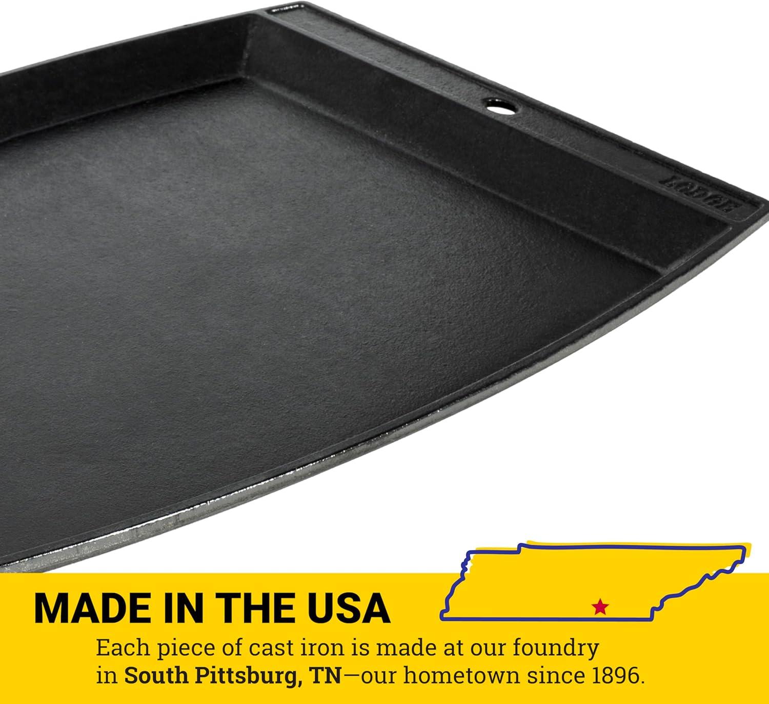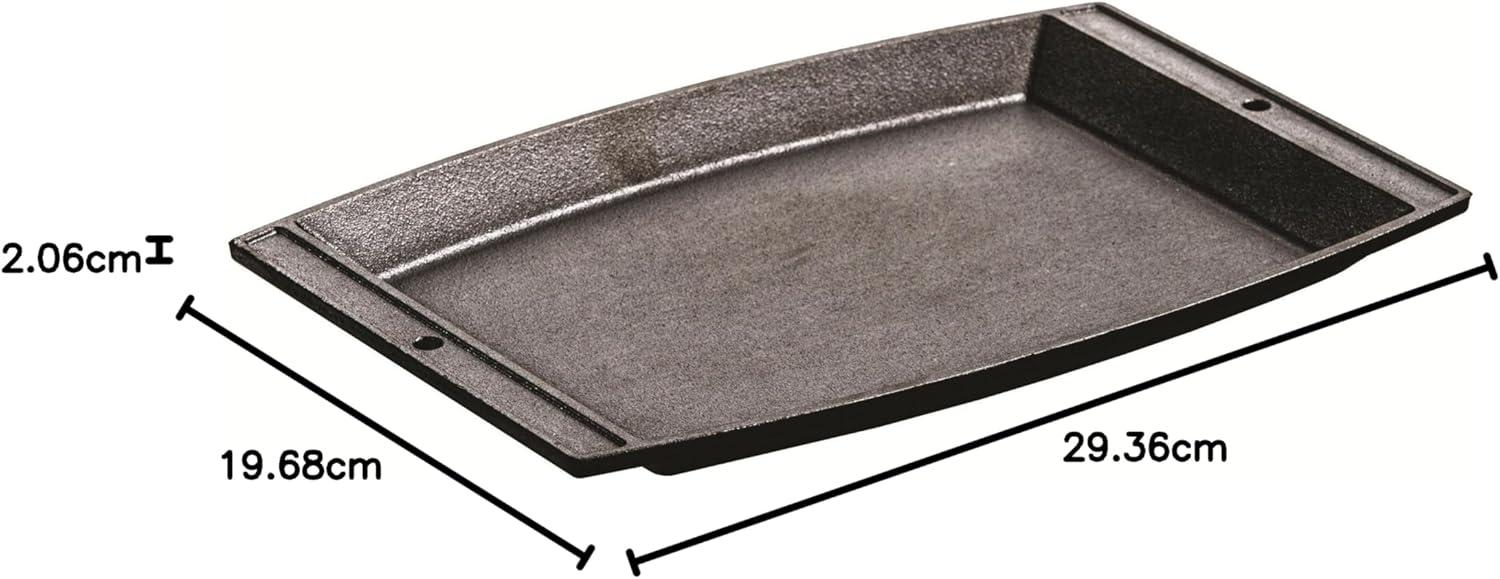 From sirloins to scallops, the 11.56″ x 7.75″ Lodge Cast Iron Rectangular Griddle is a unique way to cook and serve a memorable meal. Seasoned with oil for a natural easy-release finish that improves with use, this griddle is the right tool to sear, sautà , bake, broil, fry or grill. At home in the oven, on the stove, on the grill or over the campfire, and great for induction cooktops. Cast iron is unparalleled in heat retention and even heating, making it brutally tough for decades of cooking. Easy care: hand wash, dry, rub with cooking oil. Made in USA. Inside dimensions: 8.5″ x 6″.