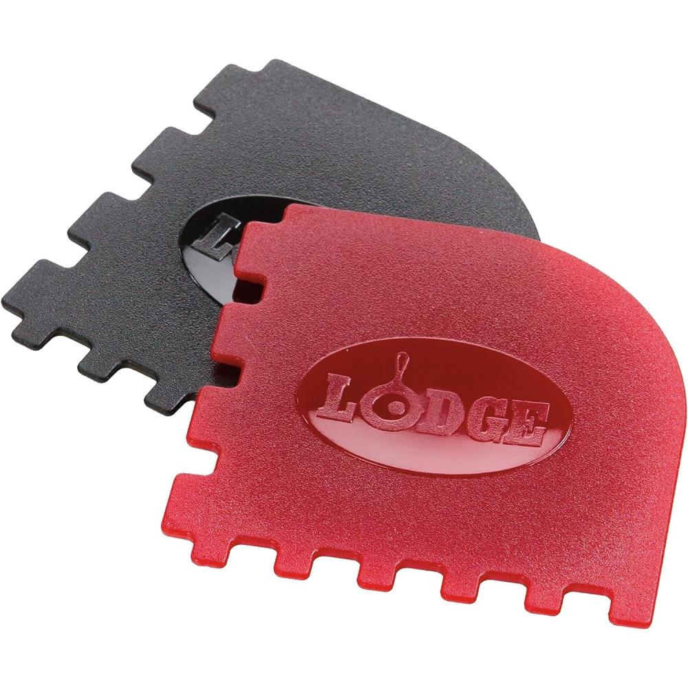 From lodge, maker of rugged cast-iron cookware, the durable polycarbonate pan scrapers come in a pack of 2 and make cleaning the stuck on food from cookware a breeze. Molded in rugged polycarbonate design safely scrapes without scratching. 2 teeth sizes designed to fit lodge grill pans and griddles. The straight edges and curves designed for flat and rounded edges. Each side is a different design to easily clean any crevice or corner. Ideal for all cookware, with or without non-stick surfaces. Heat resistant to 275-degree f. Comes in a 2 pack with one red and one black. Dishwasher safe.