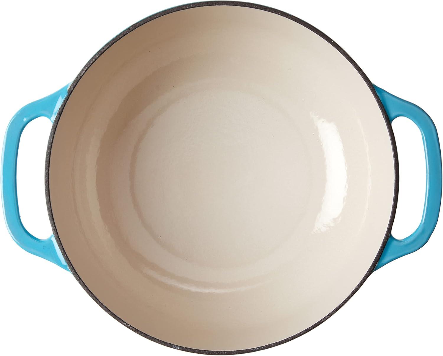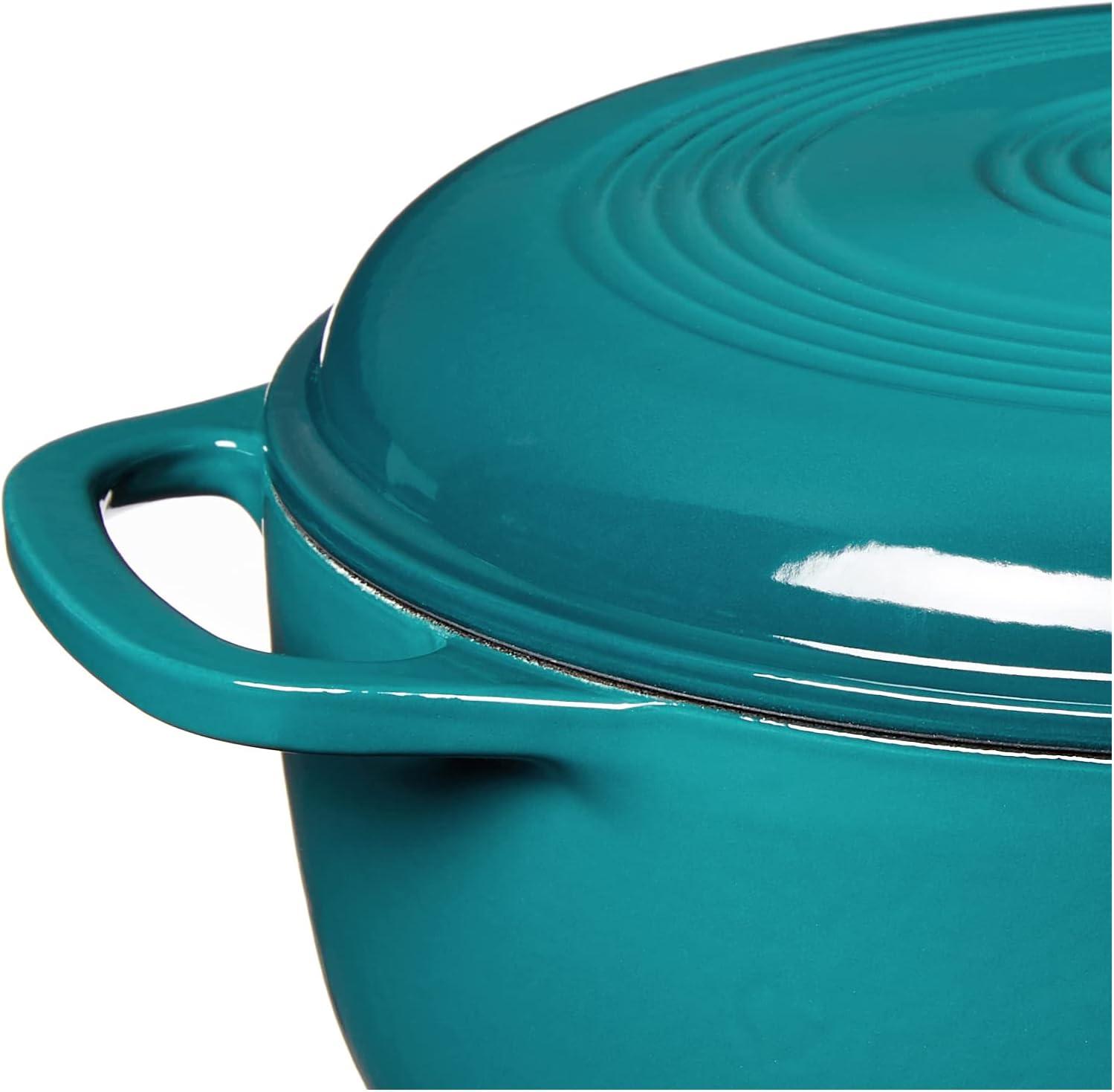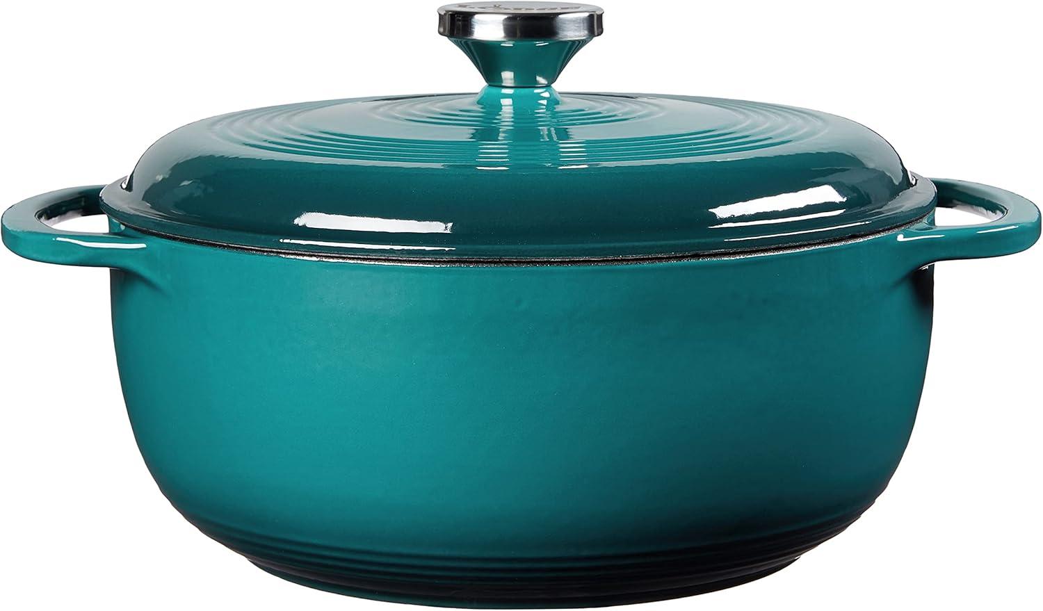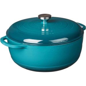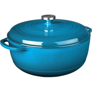 Lodge 3 Quart Enameled Cast Iron Dutch Oven with Lid – Dual Handles – Oven Safe up to 500° F or on Stovetop – Use to Marinate, Cook, Bake, Refrigerate and Serve – Caribbean Blue(Caribbean Blue)
