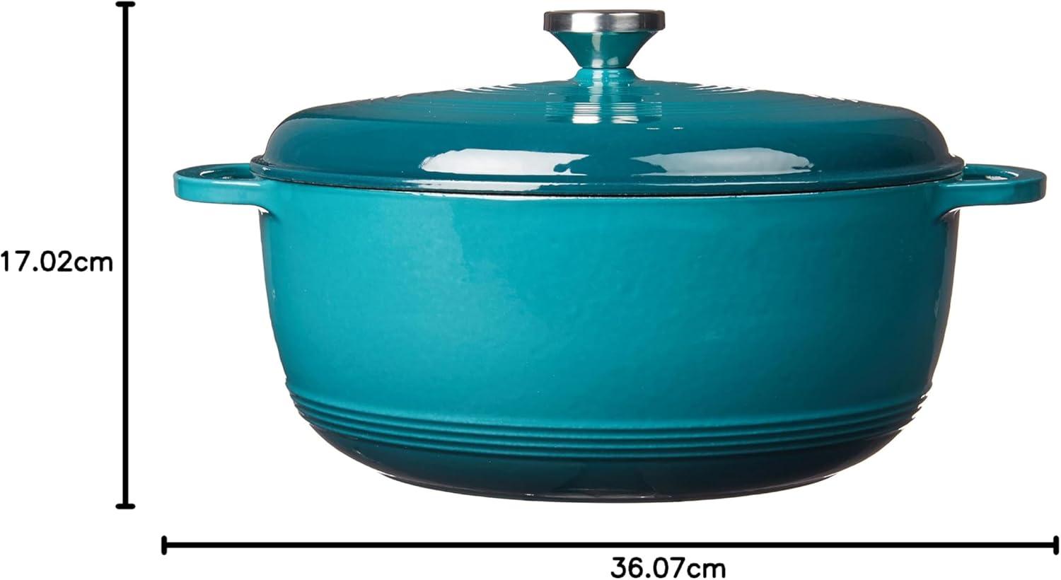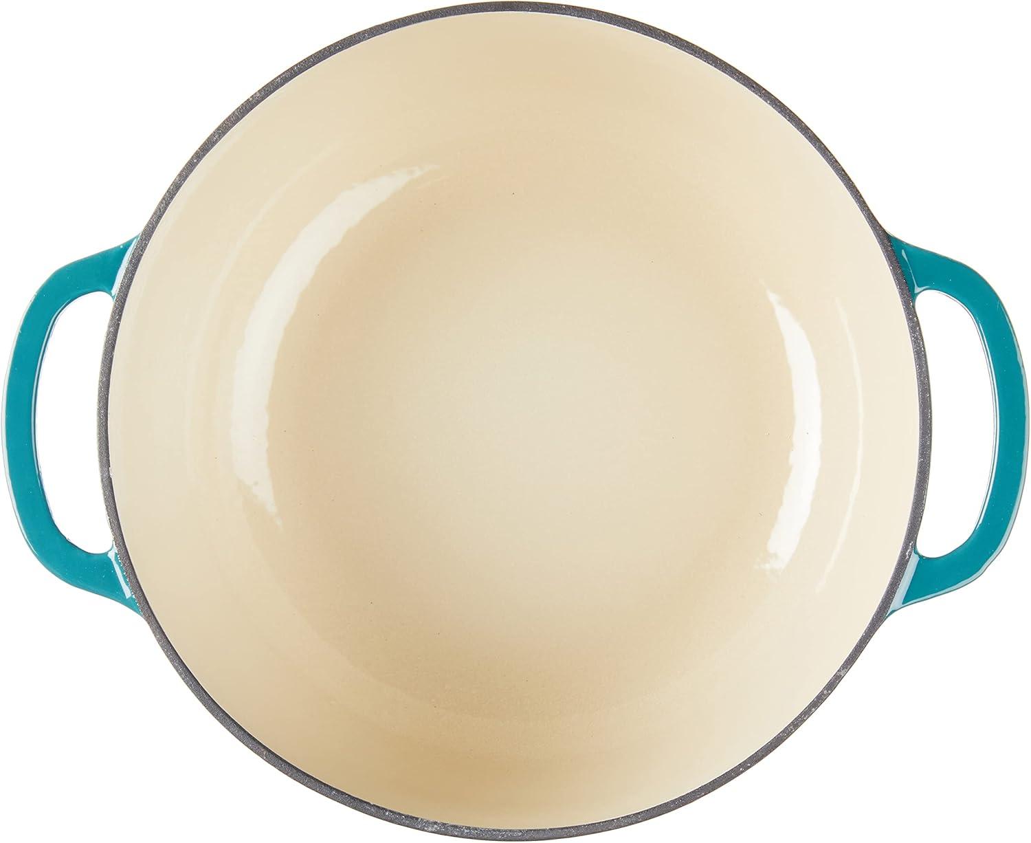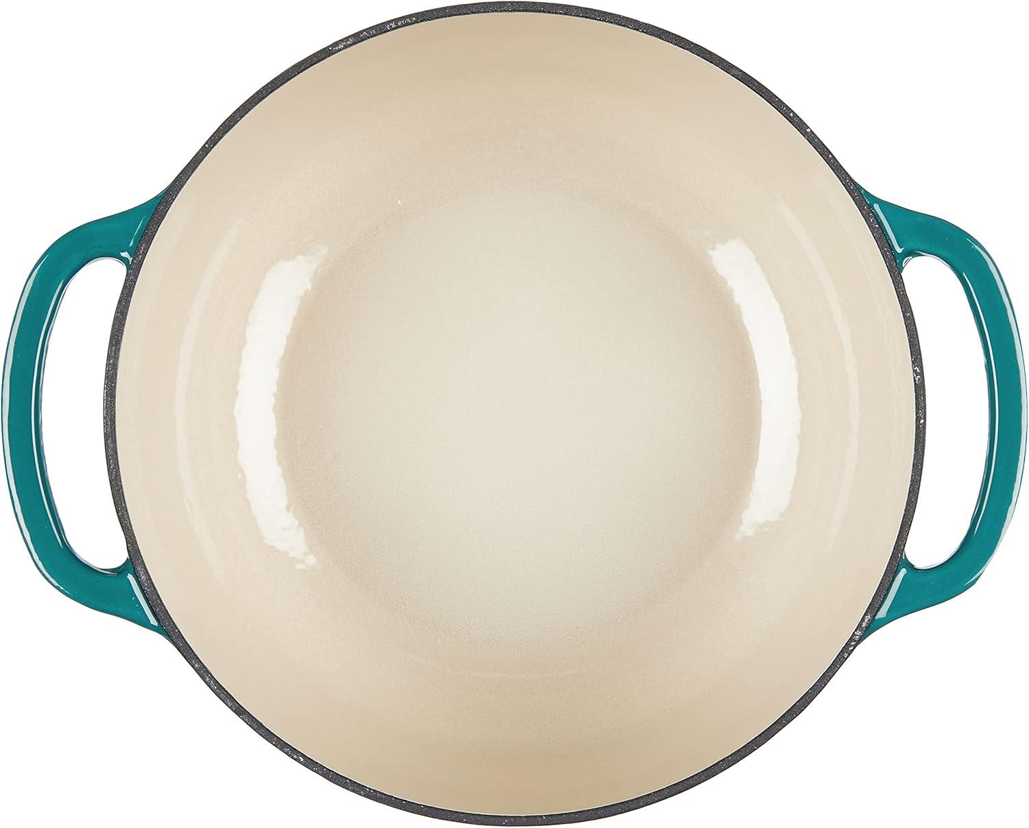 Lodge 3 Quart Enameled Cast Iron Dutch Oven with Lid – Dual Handles – Oven Safe up to 500° F or on Stovetop – Use to Marinate, Cook, Bake, Refrigerate and Serve – Caribbean Blue(Caribbean Blue)