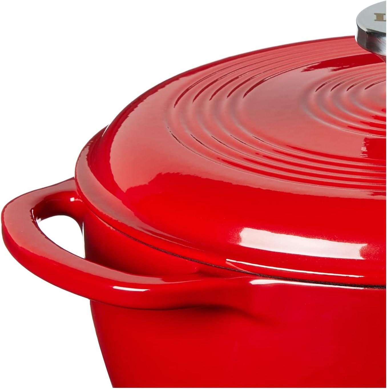 Lodge 3.6 Quart Enameled Cast Iron Oval Casserole With Lid– Dual Handles – Oven Safe up to 500° F or on Stovetop – Use to Marinate, Cook, Bake, Refrigerate and Serve – Island Spice Red(Island Spice Red)
