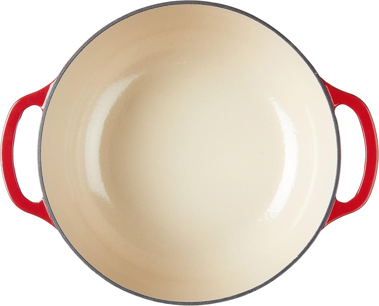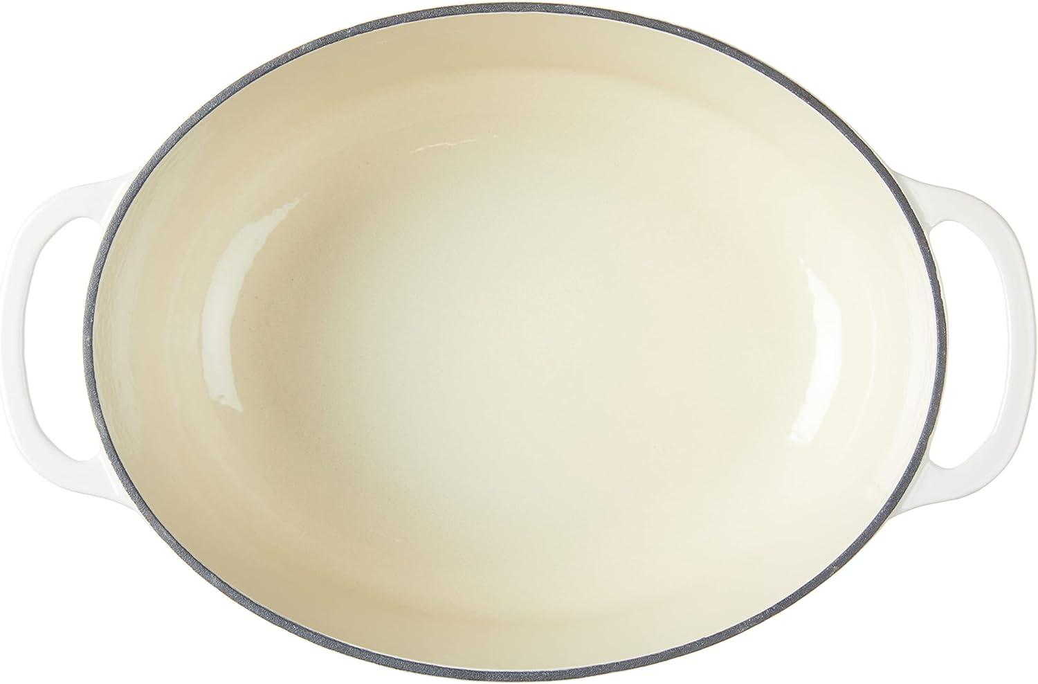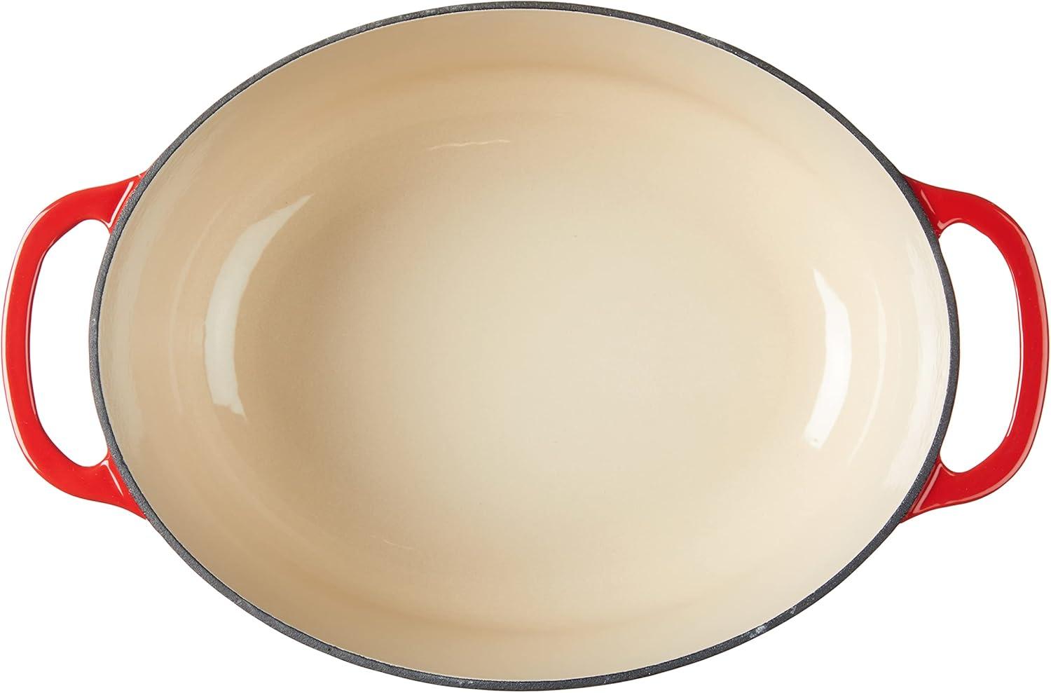 Lodge 3.6 Quart Enameled Cast Iron Oval Casserole With Lid– Dual Handles – Oven Safe up to 500° F or on Stovetop – Use to Marinate, Cook, Bake, Refrigerate and Serve – Island Spice Red(Oyster White)