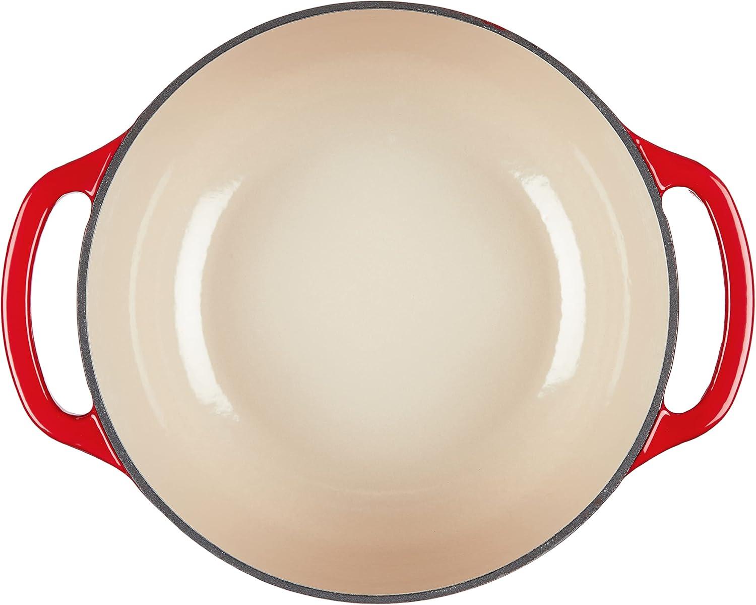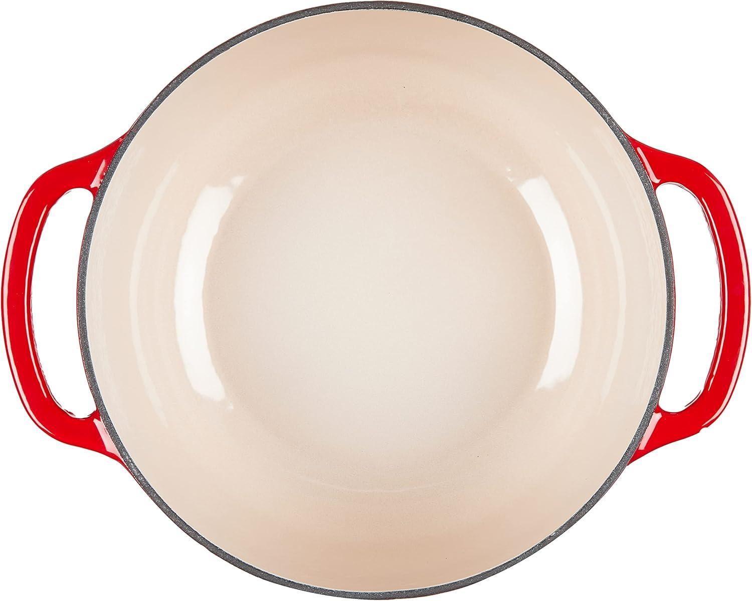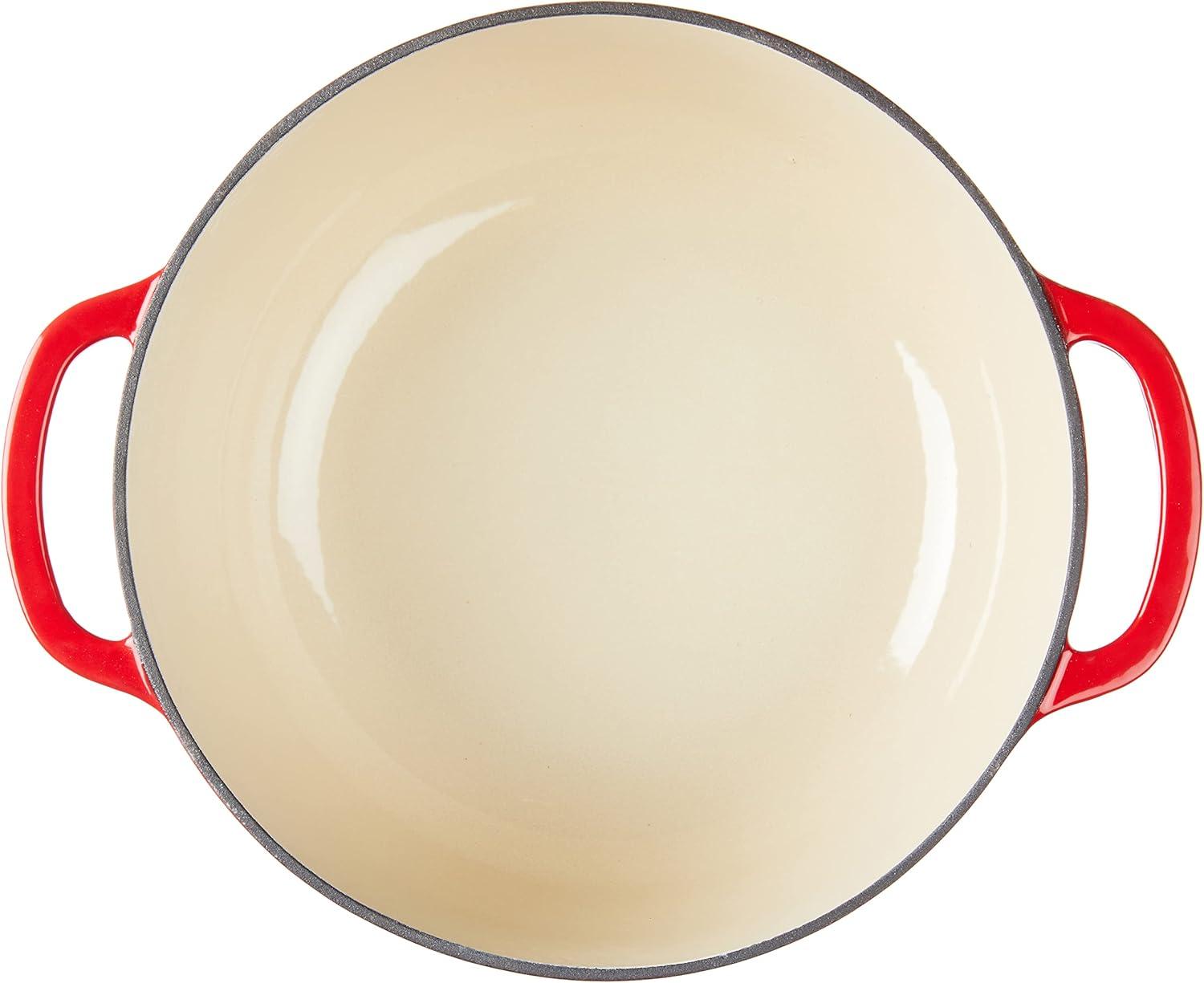 Lodge 3.6 Quart Enameled Cast Iron Oval Casserole With Lid– Dual Handles – Oven Safe up to 500° F or on Stovetop – Use to Marinate, Cook, Bake, Refrigerate and Serve – Island Spice Red(Oyster White)