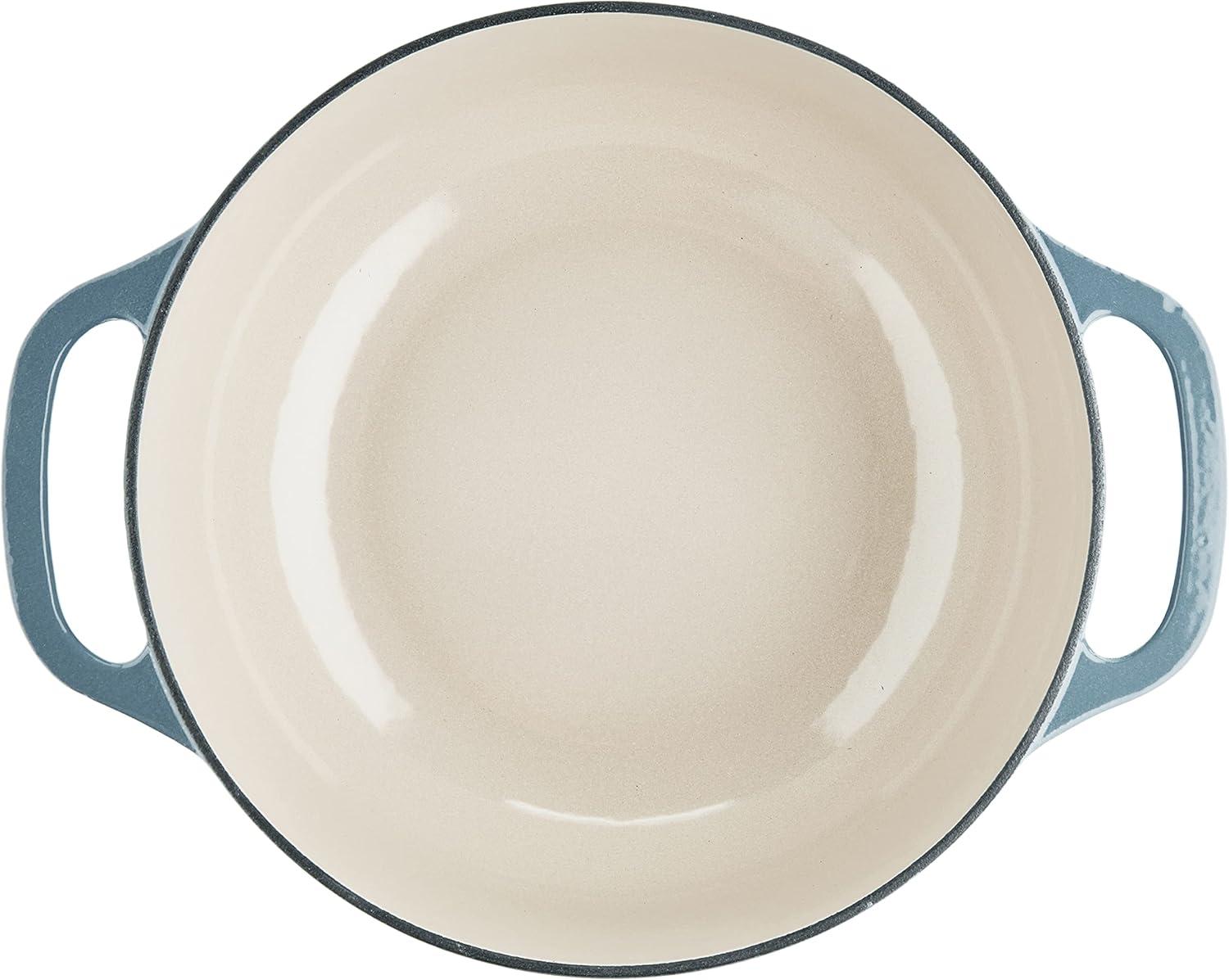 Lodge 3 Quart Enameled Cast Iron Dutch Oven with Lid – Dual Handles – Oven Safe up to 500° F or on Stovetop – Use to Marinate, Cook, Bake, Refrigerate and Serve – Caribbean Blue(Oyster)