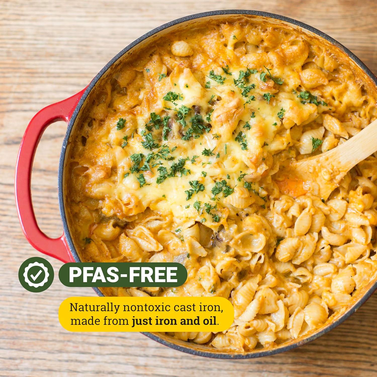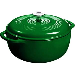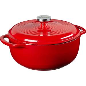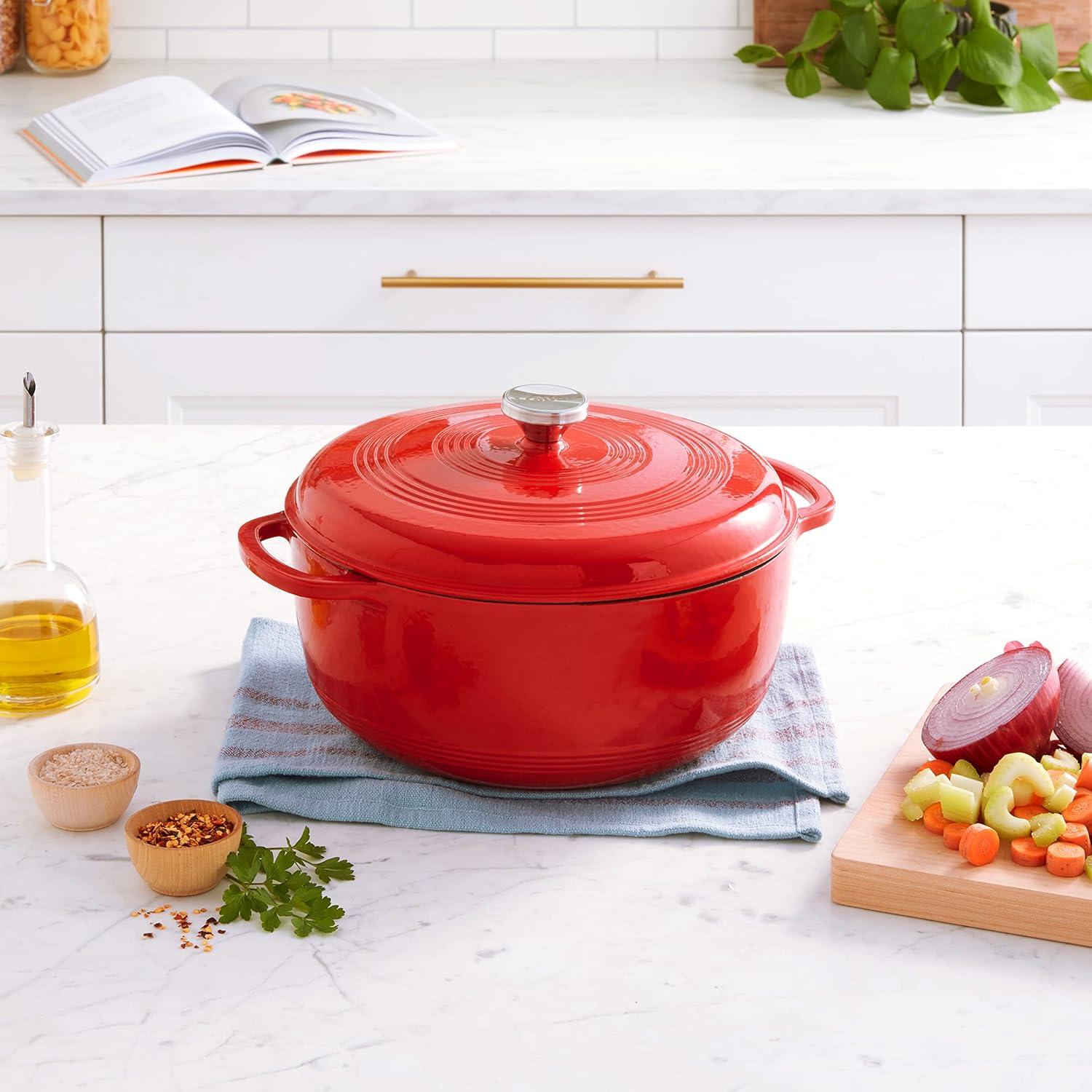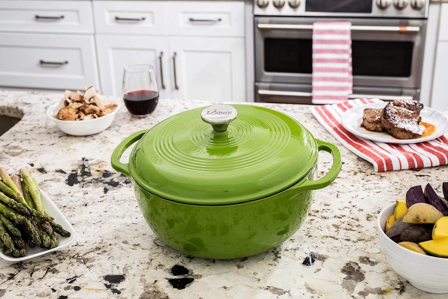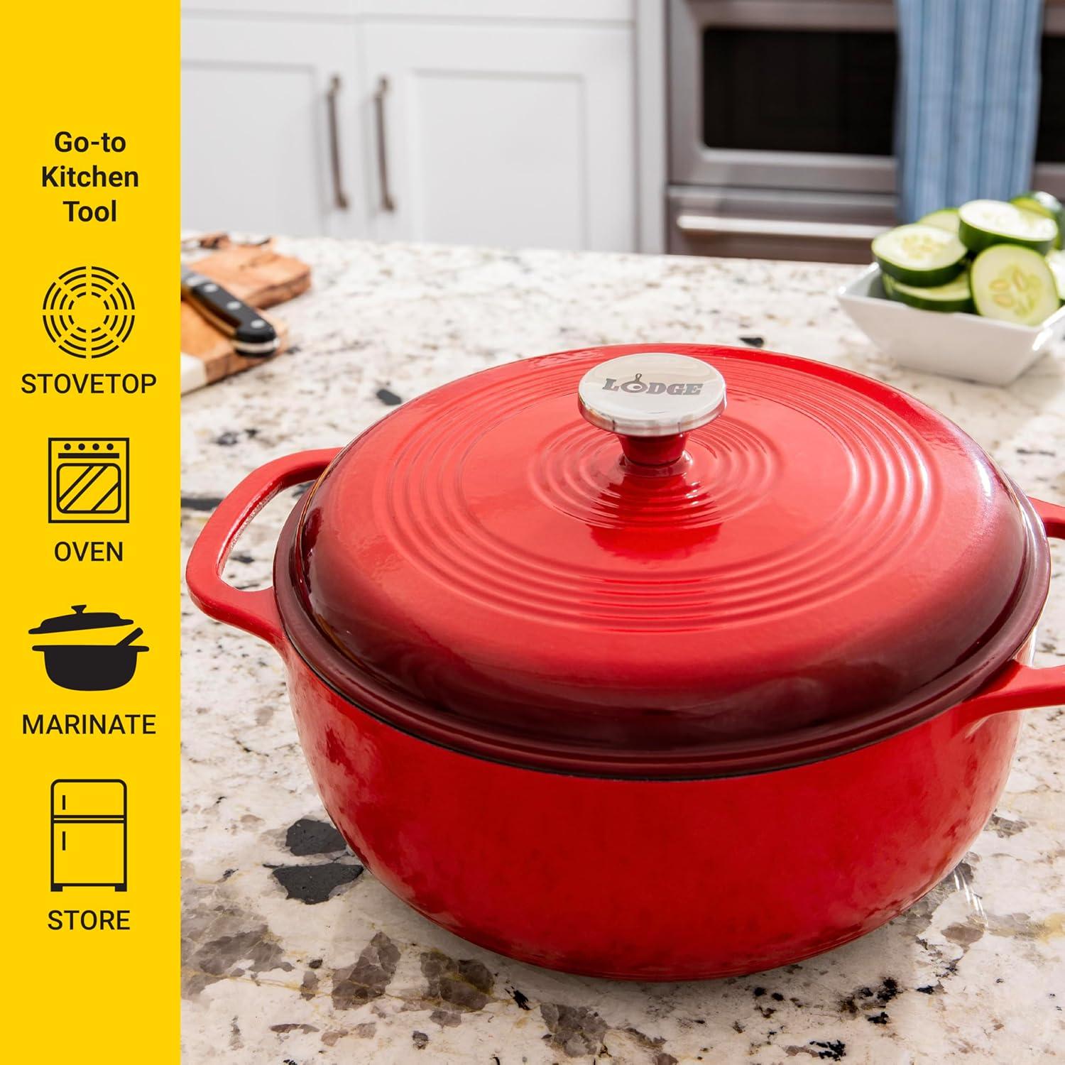 Lodge 4.5 Quart Enameled Cast Iron Dutch Oven with Lid – Dual Handles – Oven Safe up to 500° F or on Stovetop – Use to Marinate, Cook, Bake, Refrigerate and Serve – Island Spice Red(Desert Sage)