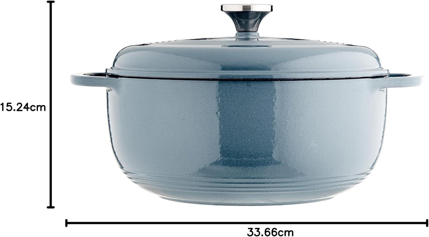 Lodge 3 Quart Enameled Cast Iron Dutch Oven with Lid – Dual Handles – Oven Safe up to 500° F or on Stovetop – Use to Marinate, Cook, Bake, Refrigerate and Serve – Caribbean Blue(Storm Blue)