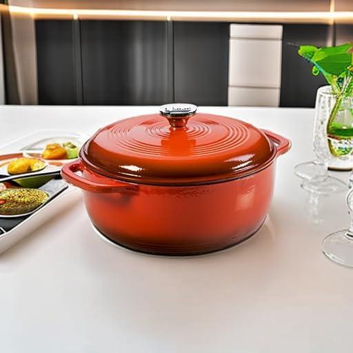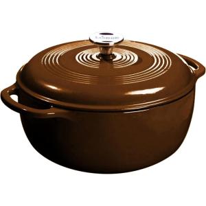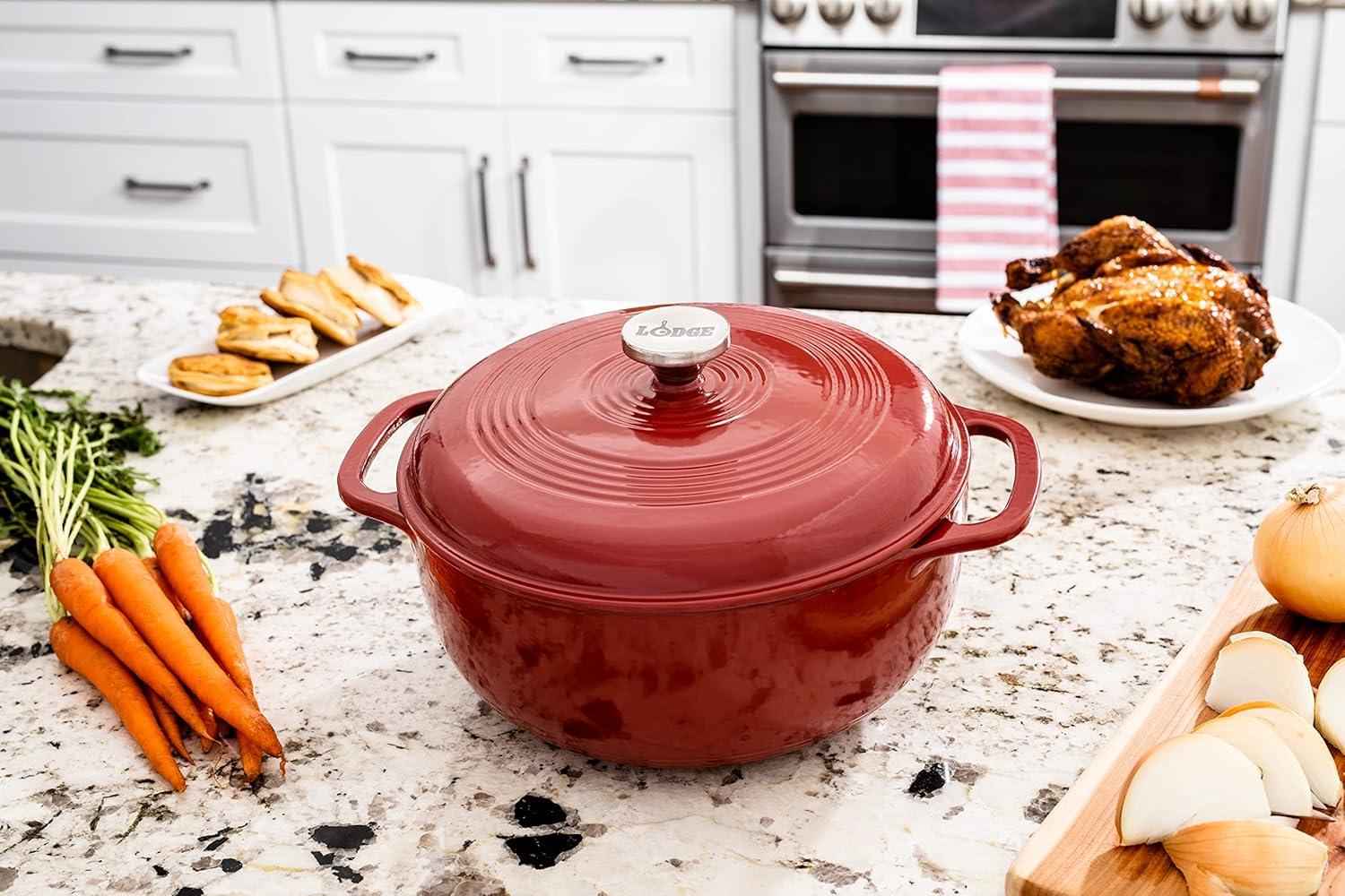 Lodge 4.5 Quart Enameled Cast Iron Dutch Oven with Lid – Dual Handles – Oven Safe up to 500° F or on Stovetop – Use to Marinate, Cook, Bake, Refrigerate and Serve – Island Spice Red(Burnt Sienna)