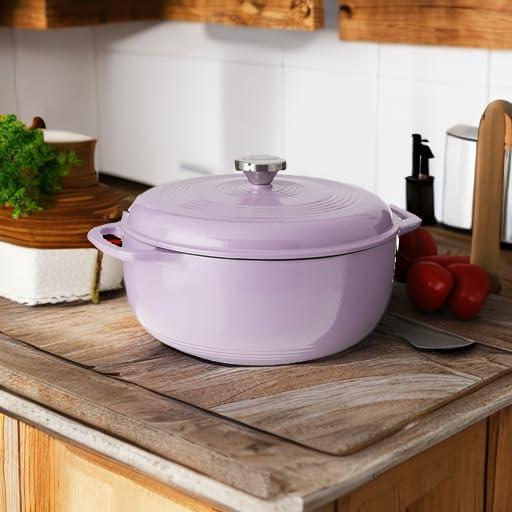 Lodge 3 Quart Enameled Cast Iron Dutch Oven with Lid – Dual Handles – Oven Safe up to 500° F or on Stovetop – Use to Marinate, Cook, Bake, Refrigerate and Serve – Caribbean Blue(Lilac)