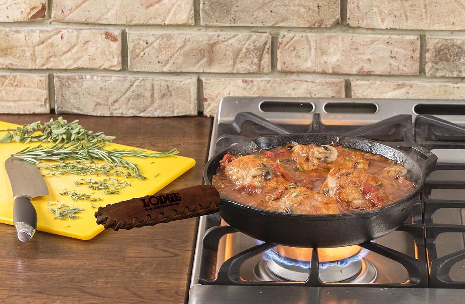 Lodge Nokona Leather Hot Handle Holder – Premium Ball Glove Leather Hot Handle Holder Designed for Traditional Lodge Cast Iron Products – Reusable Heat Protection Up to 600° – Brown(5.8)