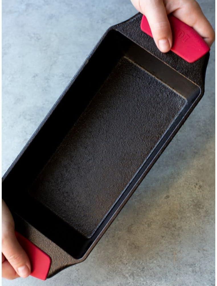 Lodge Silicone Assist Handle Holder – Dishwasher Safe Hot Handle Holder Designed for Traditional Lodge Cast Iron Dual Handle Products – Reusable Heat Protection Up to 450° – Red(Black)