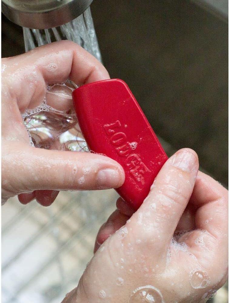 Lodge Silicone Assist Handle Holder – Dishwasher Safe Hot Handle Holder Designed for Traditional Lodge Cast Iron Dual Handle Products – Reusable Heat Protection Up to 450° – Red(Red)