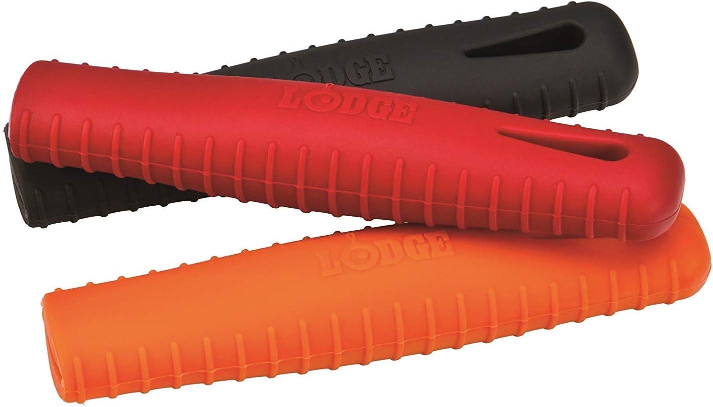 Lodge Silicone Hot Handle Holder – Dishwasher Safe Hot Handle Holder Designed for Lodge Cast Iron Skillets 9 Inches+ w/Keyhole Handle – Reusable Heat Protection Up to 500° – Black(Orange)