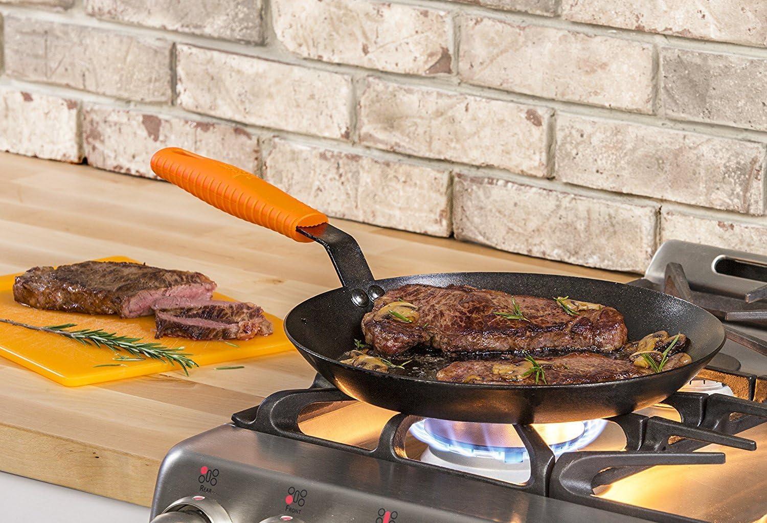 Lodge Silicone Hot Handle Holder – Dishwasher Safe Hot Handle Holder Designed for Lodge Carbon Steel Pan Products – Reusable Heat Protection Up to 500° – Black(Orange)