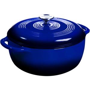Lodge 4.5 Quart Enameled Cast Iron Dutch Oven with Lid – Dual Handles – Oven Safe up to 500° F or on Stovetop – Use to Marinate, Cook, Bake, Refrigerate and Serve – Island Spice Red(Cornflower Blue)